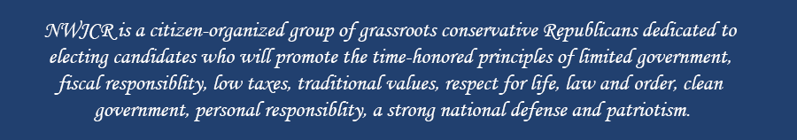 Join the Northwest Johnson County Republicans! Founded in 2008, the Northwest Johnson County Republicans are the premier conservative grassroots organization within Northwest Johnson County, Kansas, covering the cities of Shawnee, Lenexa, Lake Quivira, and De Soto. NWJCR is a citizen-organized group of grassroots conservative Republicans dedicated to electing candidates who will promote the time-honored principles of limited government, fiscal responsiblity, low taxes, traditional values, respect for life, law and order, clean government, personal responsibility, a strong national defense and patriotism. We are a membership-based organization, but joining is a very simple process. Simply CLICK HERE to access a membership form. Once approved, we will send you the link to pay your $25 dues. |